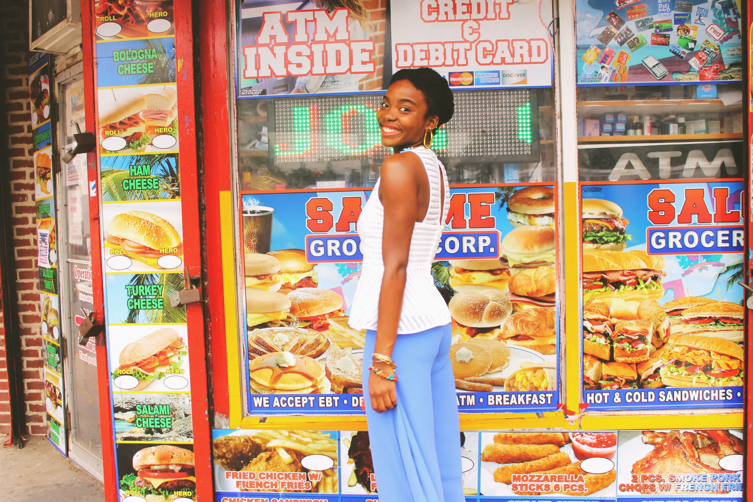 Keeping with the sartorial theme of the bright summer colors [see my last post with my fave neon skirt here], I ventured to find more color. And I found it. Turns out- I didn’t have to venture far. Actually, not far at all. My search lead me to a local bodega.
