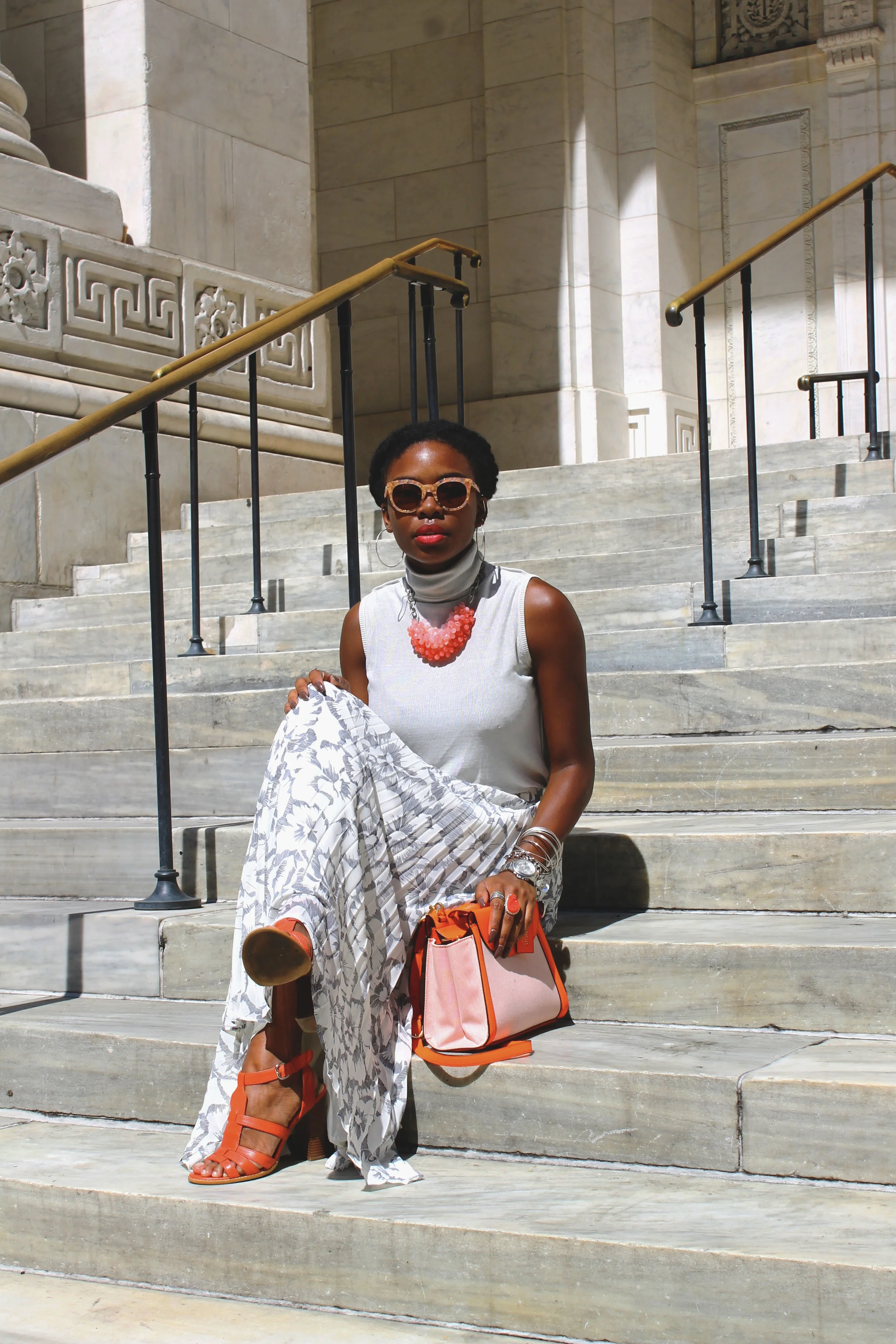 Shirt: Banana Republic; Skirt: Banana Republic; Shoes: Enzo Angiolini; Necklace: bought at Philly First Friday's; Bag: Kate Spade Saturday; Sunglasses: Dolce & Gabbana