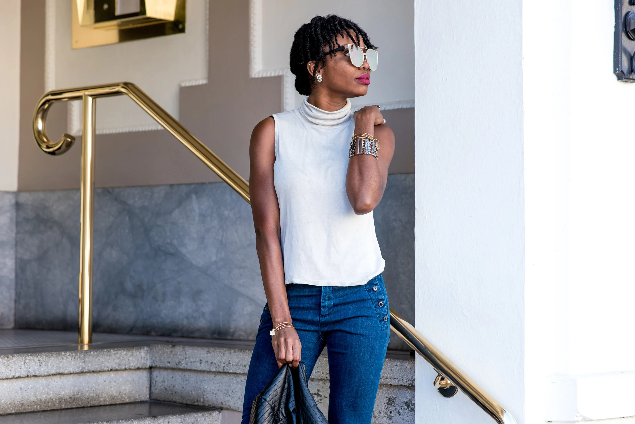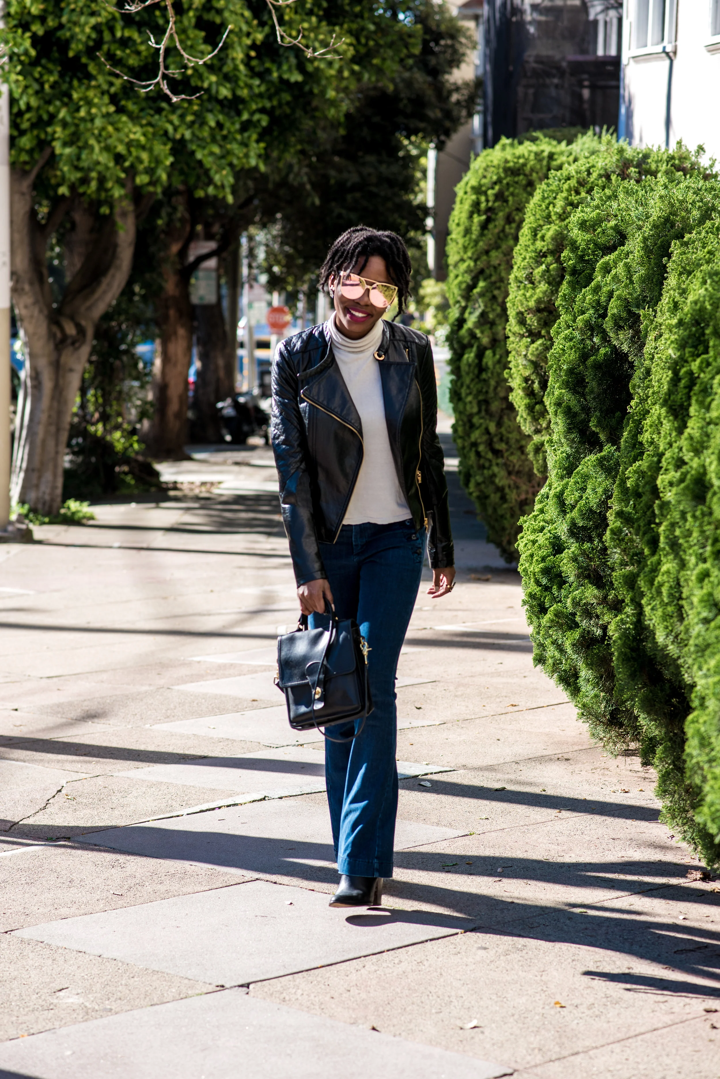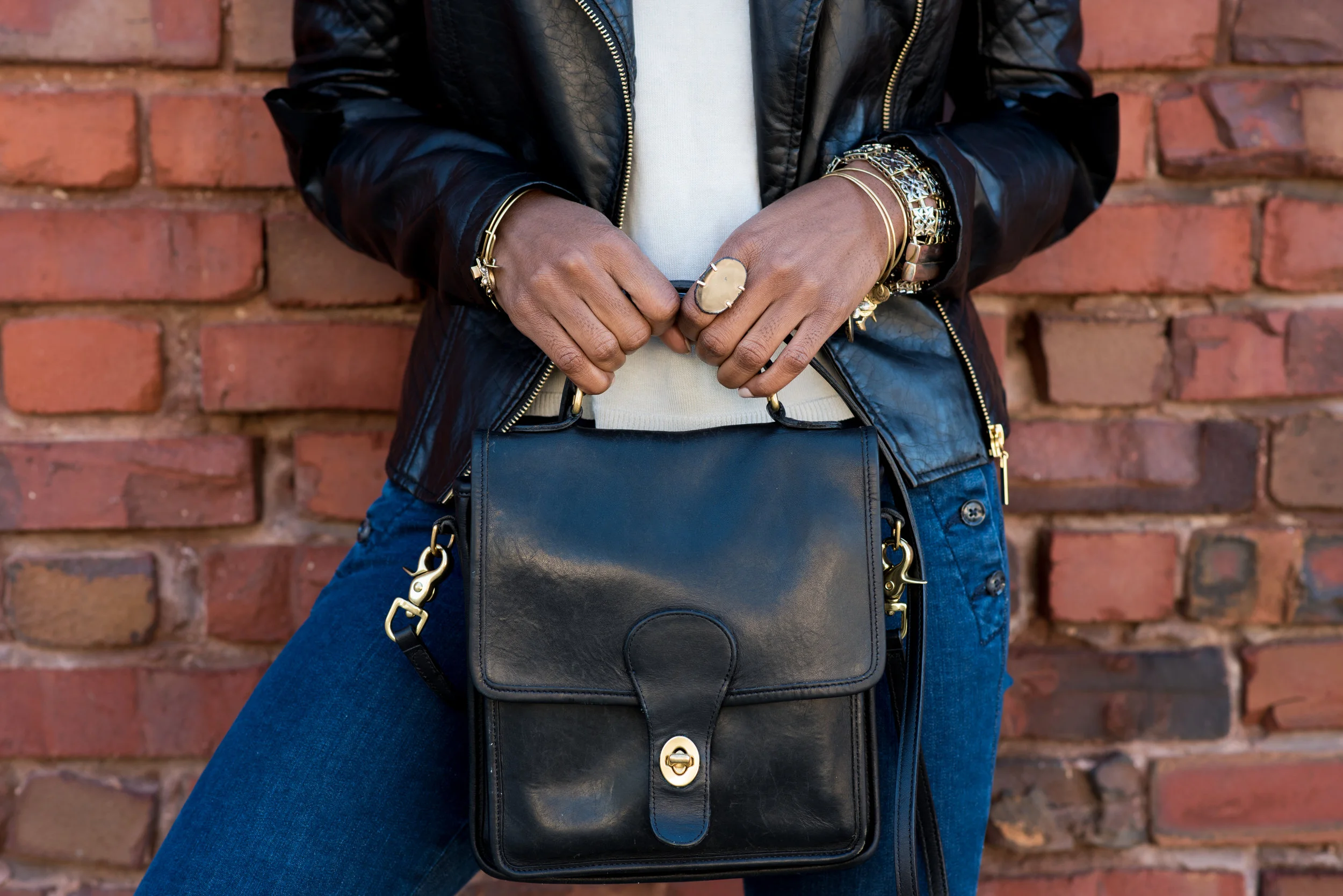 Top: Vintage; Jeans: Banana Republic; Shoes: Banana Republic; Jacket: Vintage; Sunglasses: Quay; Bag: Coach; Ring: Hawk & Harper